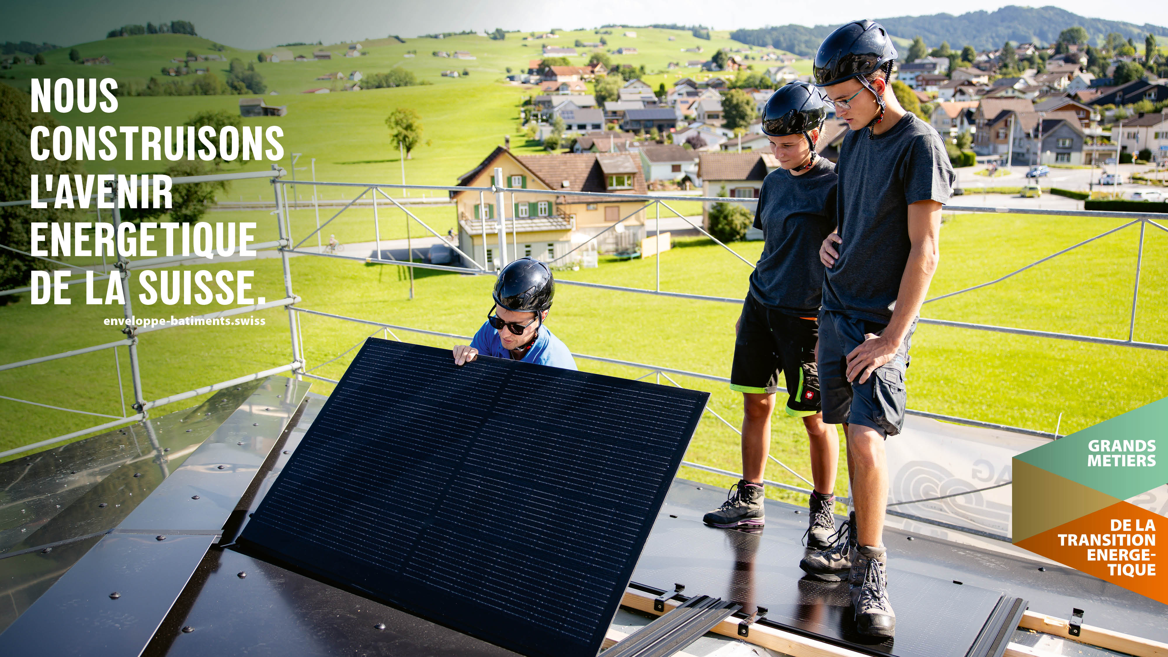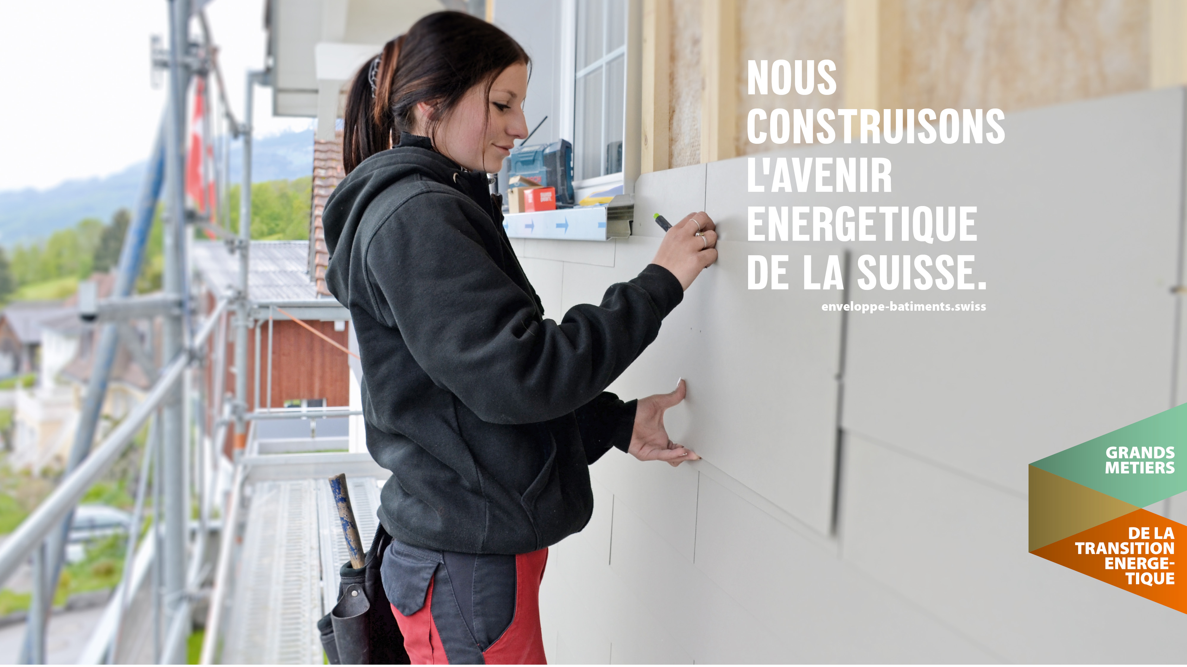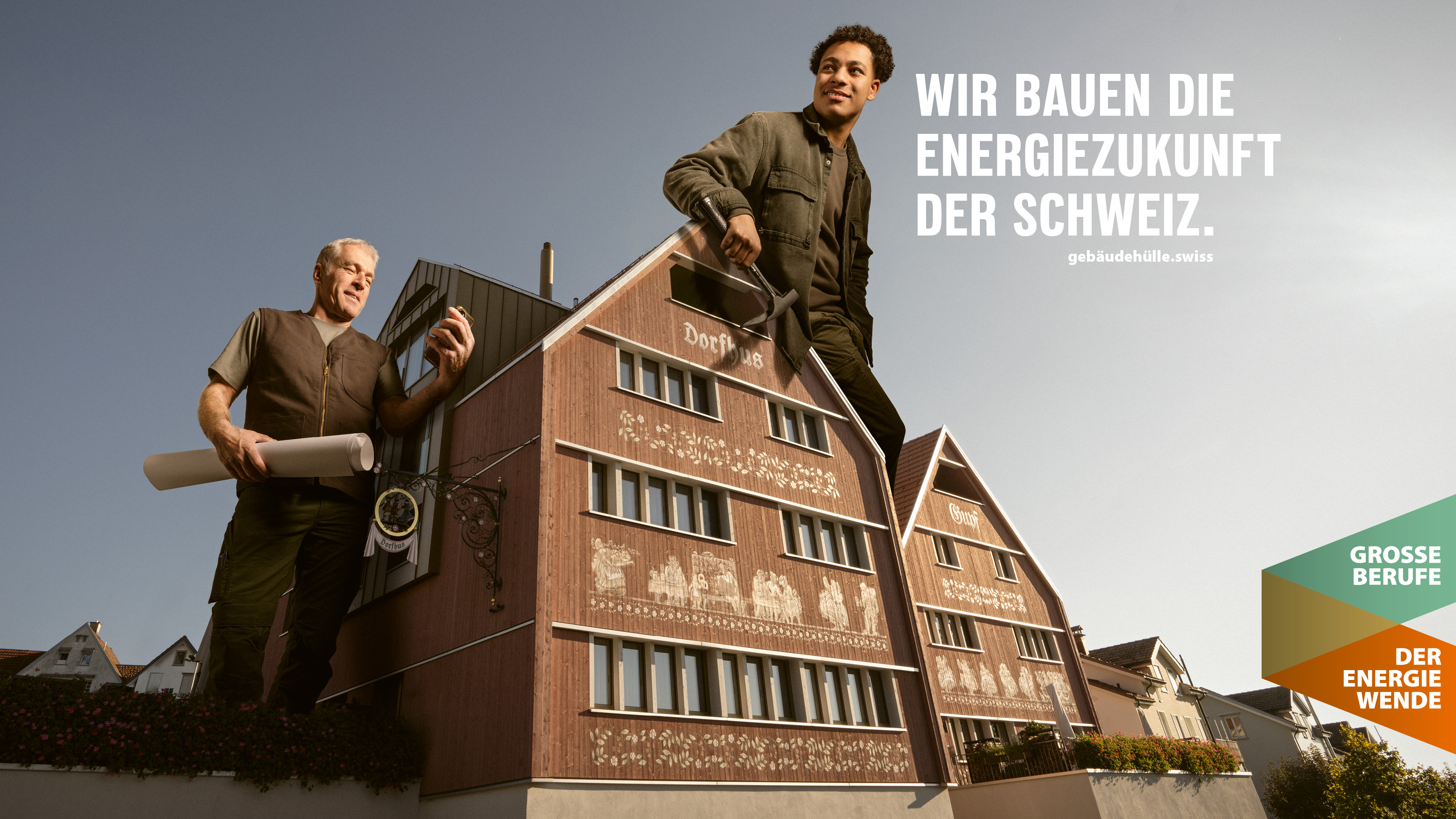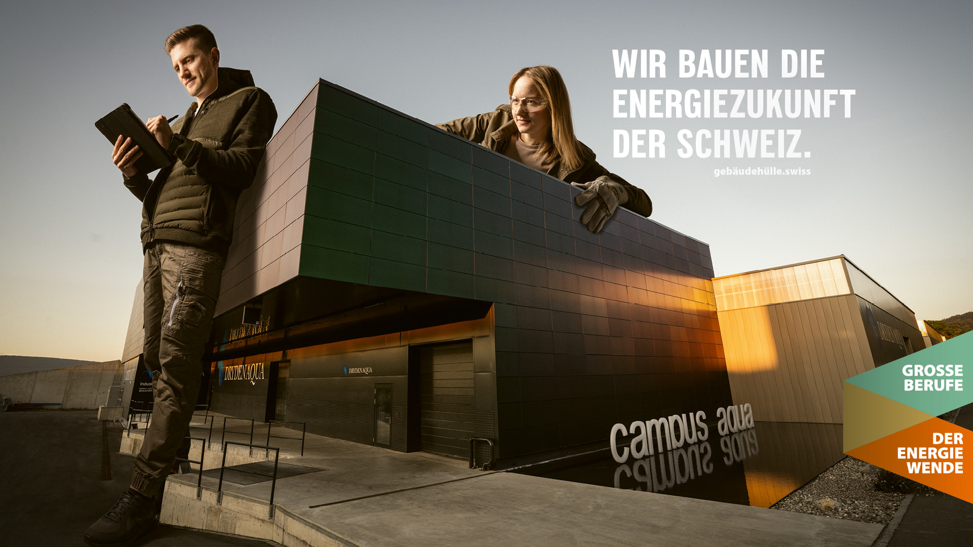 ... und bieten in diesem Zusammenhang grosse und sinnstiftende Berufe an. Gemeinsam bauen wir die Energiezukunft der Schweiz. Diese Kampagne dient als Brückenelement zwischen gebäudehülle.swiss und hoch-hinaus.ch und hat das übergeordnete Ziel, das Image der Gebäudehüllen-Branche mittelfristig positiv zu beeinflussen.