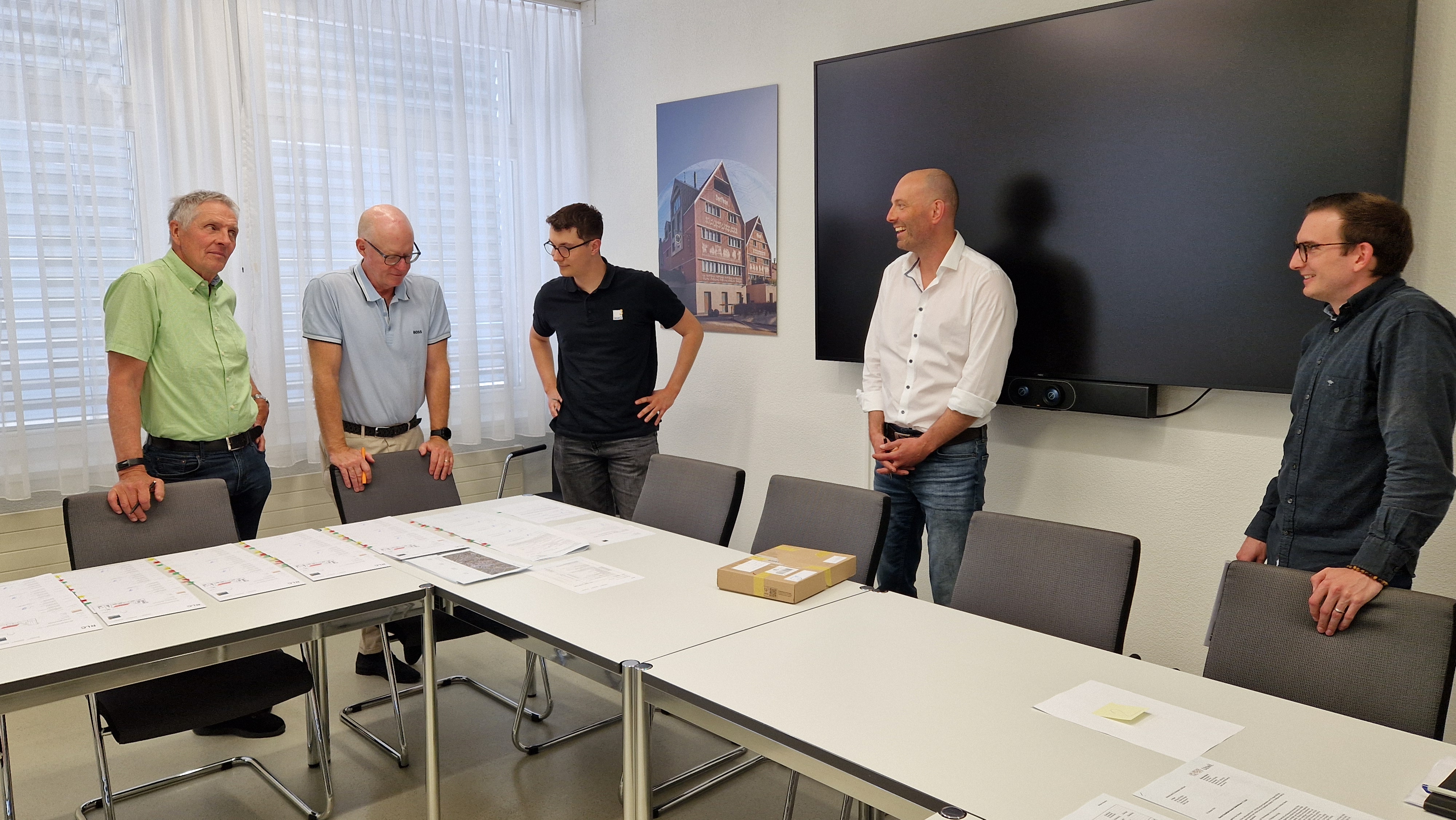 Das Projekt rund um den Neubau ist auf Kurs. Seit anfangs 2024 kümmert sich die Baukommission zielgerichtet um das Leuchtturmprojekt. Seit anfangs Juni kündigen die Visiere an der Ecke Bahnhofstrasse-Sonnenhügelstrasse in Uzwil an, dass es mit dem Vorhaben vorwärts geht. Hier entsteht der Neubau für das neue Schulungs- und Verwaltungsgebäude für das Berufsfeld Gebäudehülle. Ab dem Schuljahr 2029/2030 werden hier die Profis für die Gebäudehülle ausgebildet.